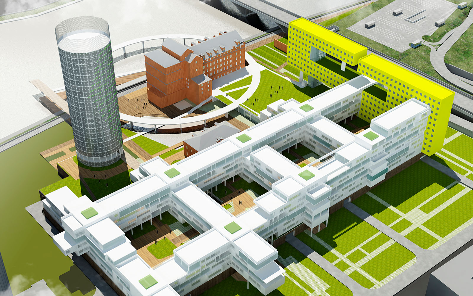 Наш проект был представлен под названием NOUVELLE (новость) и, конечно же, в честь новатора архитектурной идеологии французского Архитектора Жана НУВЭЛЯ. Суть предложения была в том, что обновляемую территорию мукомольного завода мы предлагали превратить в молодежный кластер. Жилье в найм, различного уровня комфортности с паркингами и комфортабельными благоустроенными дворами. В сохраняемых исторических зданиях организуется полноценный творческий молодежный кластер. Формируется многоуровневое общественное пространство, которое можно использовать под выставки, лекции, конференции, воркшопы, коворкинги, антикафе и т.д. С творческим кластером сосуществуют офисы, торговля, развлекательные учреждения, рестораны кафе, бары, фитнес-центры. Близость этого участка к району Екатеринбург-СИТИ, это шанс приблизить активную часть молодежи к зоне деловой активности мегаполиса, сделать этот район престижным местом. Дать шанс развивающейся личности почувствовать это место СВОИМ. Мы сознательно не ставили перед собой задачи победить в этом конкурсе. Мы сознательно отказались выполнить все требования конкурсного задания. Молодой коллектив объединился в своем желании показать, как и где они хотят жить сегодня.